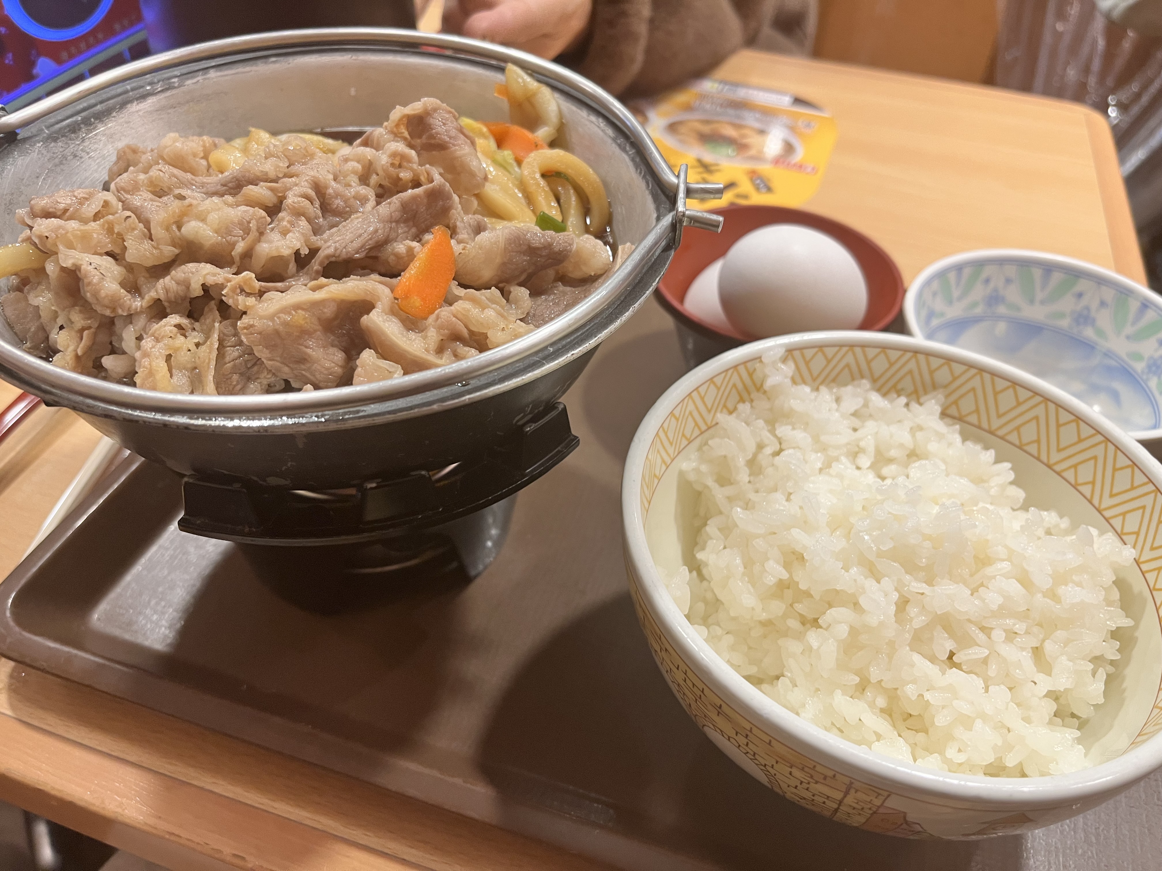 작은 스키야키 냄비가 얹어져 나온다.